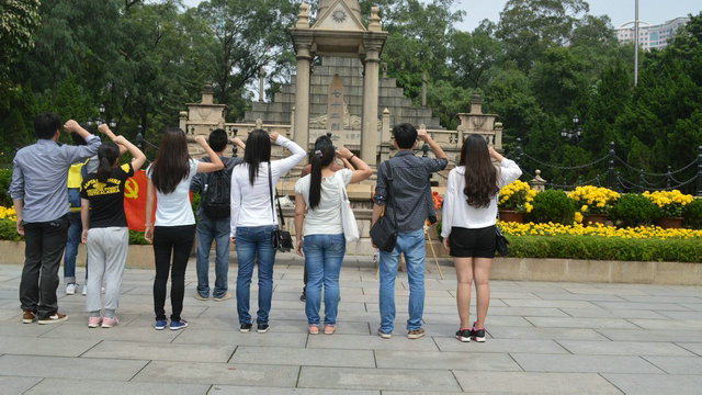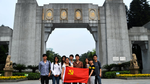 在黄花岗七十二烈士墓园面前,我系第三党支部书记秦文飞老师带领党员同志们一起向八十六位烈士进行了三分钟的默哀,随后沿着墓园走一圈,缅怀革命先烈。然后,各预备党员、党员以及发展党员在革命先烈面前再一次进行了庄严的入党宣誓。宣誓的声音浩荡而又激昂,表明各位党员同志加入中国共产党的决心,并为贡献自己的力量做好准备。