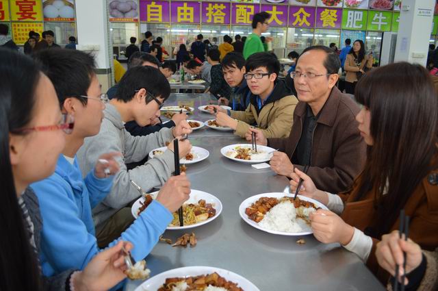 本系讯(通讯员:王健忠) 3月21日,为深入开展党的群众路线实践教育活动,公司经理王培林、后勤处副处长刘建文、公告院办老师郑培佐、管理系党总支书记杨晓文、管理系办公室主任钟清恒一行邀请我系员工在三饭三楼共进午餐。