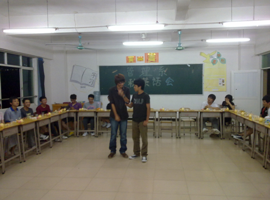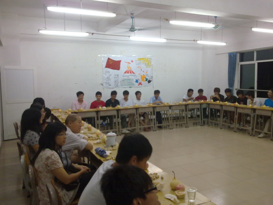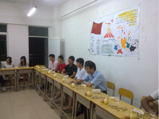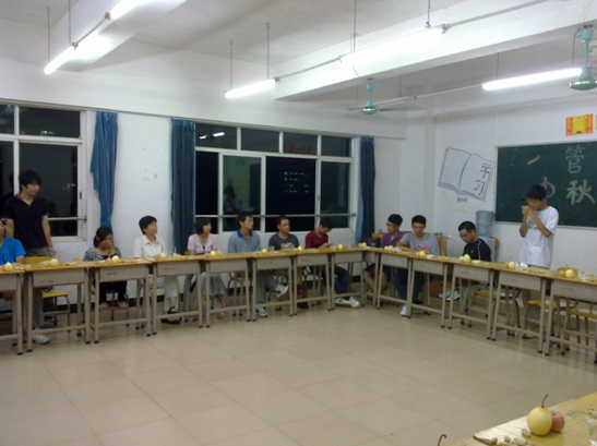 管理系为了2010级新生能在公司欢度中秋,于9月22日晚上八点在6栋308课室举行2010年管理系中秋茶话会,管理系主任伍曙、党总支书记刘元俊、管理系副主任肖振华等出席晚会。系领导和员工共聚一堂,吃月饼看表演,欢乐的气氛弥漫了整个校园。
