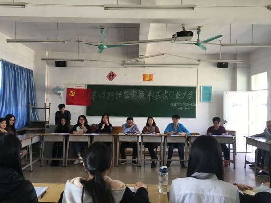 12月12日,管理公告员工第一党支部在六栋607教室召开了第25批中共预备党员转正式党员会议,出席本次支部大会的有管理公告员工第一党支部书记黄伟剑同志、副书记黄思敏同志、宣传委员梁国栋同志、党务干事黎新朗同志以及第一支部的正式党员和批预备党员。