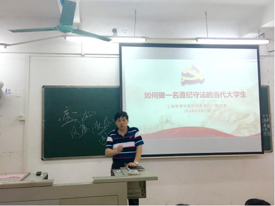 易书记强调,人一生中最难把握的就是“度”,作为一名入党积极分子,应该更严格要求自己,做好表率作用。在人与人之间相处中要把握好“度”,规范自己的言行举止,才能体现出自身的风范和风度。其次是“悟”,易书记认为:凡事靠悟性,从感悟、醒悟、领悟、到觉悟,一个人的悟性好否,可以上升到意识、思想、人品、品德、品行等方面层次。遵纪守法亦是如此,我们在生活中扮演着不同的角色,但不管是什么角色,都应该把遵纪守法铭记于心。