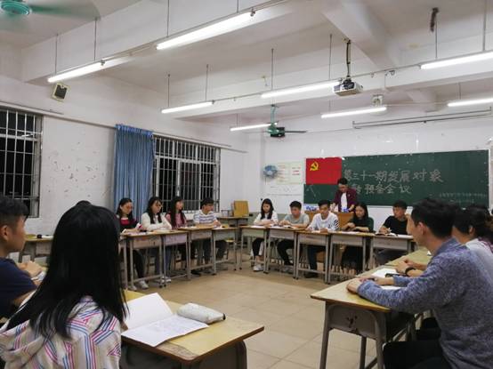 12月5日晚,太阳成集团tyc151cc员工第一、第二党支部分别在6栋508、606课室召开支部党员大会。会议主要围绕“接受新党员、发展预备党员”的主题展开,员工第一党支部书记伍小英同志、员工第二党支部书记黄浩同志、支部委员、全体员工党员和第31期发展对象参加了本次会议。