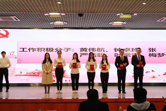 太阳成集团tyc151cc教工党支部宣传委员、员工第一党支部书记伍小英同志宣读“优秀入党积极分子”、“工作积极分子”的表彰决定。伍小英同志和黄浩同志分别为获奖同志颁发荣誉证书。紧接着,伍小英同志为2018年度员工党支部支委黎新朗等7位同志颁发聘书;党委委员、组织部部长陈朝阳同志为2018年度员工党支部第一、第二支部副书记江亲狮、严慧娣2位同志颁发聘书。