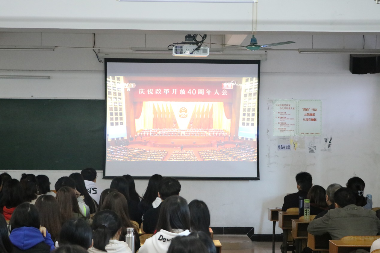 12月18日上午,为了庆祝改革开放40周年,深入贯彻落实习近平总书记的重要讲话精神,公司党总支组织全体师生党员、第32期入党积极分子以及团员代表在经管楼516教室一同观看“庆祝改革开放40周年大会”直播。