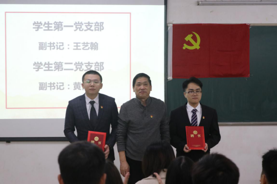 伍小英同志宣读“优秀入党积极分子”、“工作积极分子”的表彰决定,并为获奖同志颁发荣誉证书。紧接着,伍小英同志为2019年度员工党支部支委严浩聪等7位同志颁发聘书;然后为2019年度员工党支部第一、第二支部副书记王艺翰,黄伟航2位同志颁发聘书。