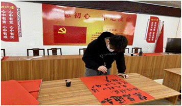 员工党员黎岳镔同志,充分发挥自身书法特长优势,从年前开始至今,负责社区宣传工作,书写社区内宣传标语、社区检测站宣传标语,传播防疫正能量。同时,他在社区两个监测站轮流值班,负责社区居民车辆、人员进入登记和测量体温。另外,他主动联合当地老员工共同制作短视频宣传防疫知识。