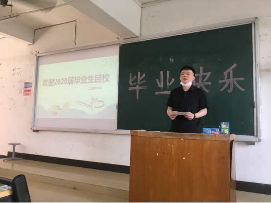 许就平主任对返校的毕业生表示热烈的欢迎;为毕业生都找到适合的工作表示祝贺;提出了在疫情期间同学们要严格遵守公司的各项规章制度、积极配合公司的防控疫情工作以及克服就业难的大困境等要求;对毕业生返校所需要完成的事宜进行详细的解释和回答,以便帮助毕业生尽快完成好相关手续之后离校。