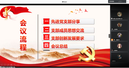 本次会议由蔡婷洁同志、谢裕华同志主持,会议围绕先进党支部分享、支部成员思想交流、支部创新发展要求以及总结四个方面开展。