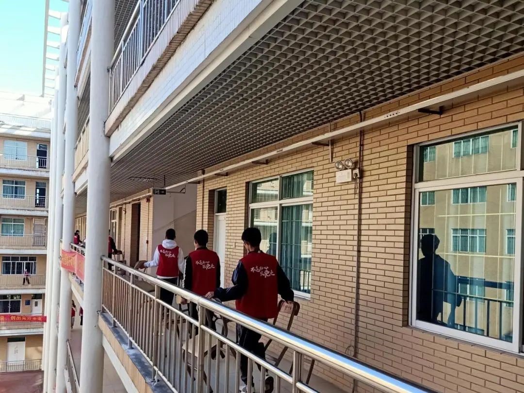 积极分子们积极投入其中,在党员同志的指挥下,将实验室中的木质板凳和靠凳全部进行转移,并对室内的胶椅进行了合理的位置摆放,整齐划一、井然有序,呈现出了一间间简洁的实验室环境。在转移搬运的过程中,同志们分工明确、团结合作,在保证安静、上课秩序的前提下,快速高效地将凳子进行转移。