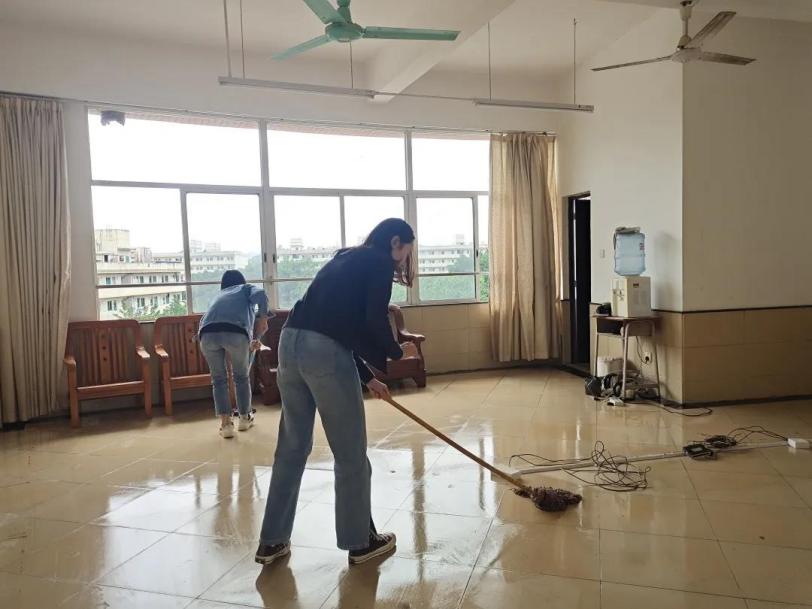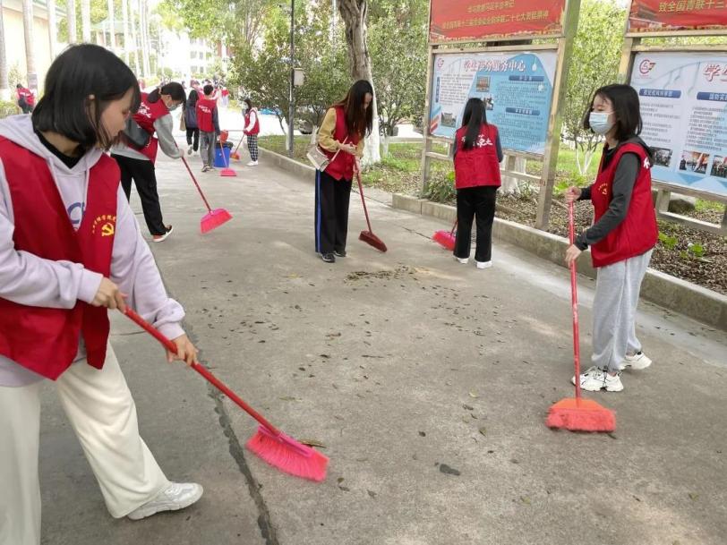 三月,春风和煦,广州理工的校园花繁叶茂,描绘了一幅欣欣向荣的美丽校园风景。下午15:00,蔡婷洁同志进行注意事项说明及小组分配,同志们随即换上装备分头行动,一队由蔡婷洁同志带队进行教室清洁,一队由谢裕华同志带队去往校园街道进行清洁,到位之后,同志们有序地开展起了清洁工作。党员同志们积极投身于其中,分工明确,团结合作,秉持精益求精的精神,有序地进行清洁工作。