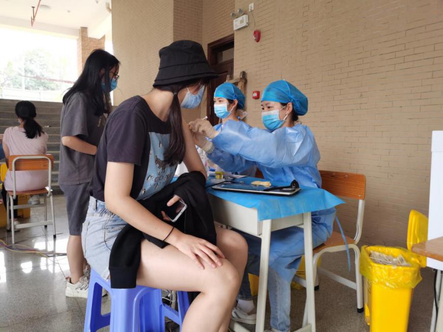 每天上午8点,接种工作按计划有序开展。师生携带身份证在13栋教学楼1楼大厅进行预检。现场医护人员会核对接种者信息、询问是否有不适宜接种情况等,符合疫苗接种条件的师生方可进行接种。接种完成后进入观察留置区,观察30分钟后无不不良反应可离开。接种现场,医护人员细心贴心、认真负责,各项工作井然有序。