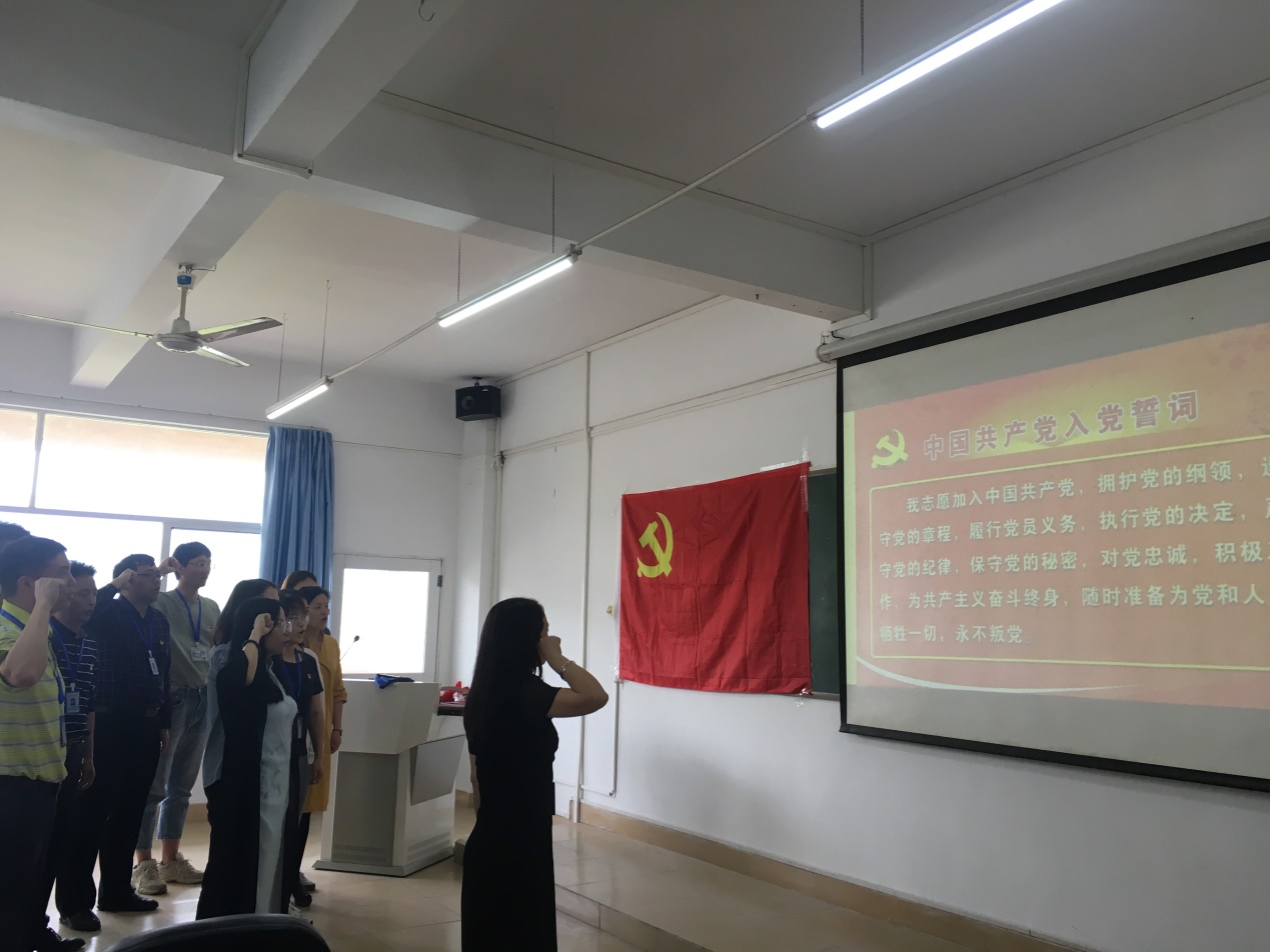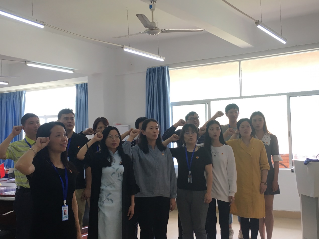 在会议最后,在杨惠书记的带领下,太阳成集团tyc151cc教工党支部的全体同志,重温入党誓词,让党员同志们进一步强化党的观念,增强党员意识,以自己的实际行动立德树人,发挥党员的模范带头作用。