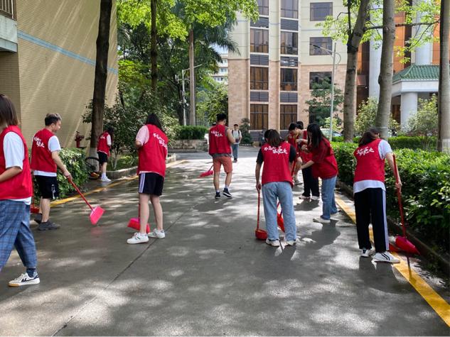 本次爱国卫生清洁志愿活动的任务主要是清扫6栋经管楼周围环境、部分课室及11栋到图书馆的过道。