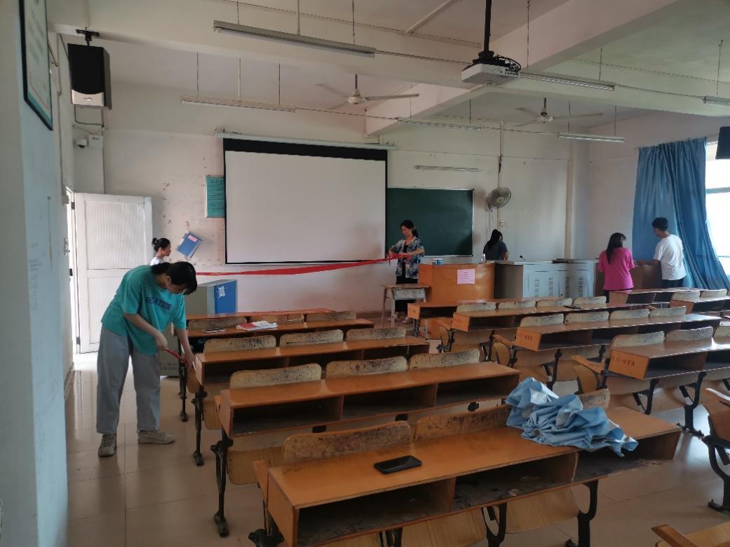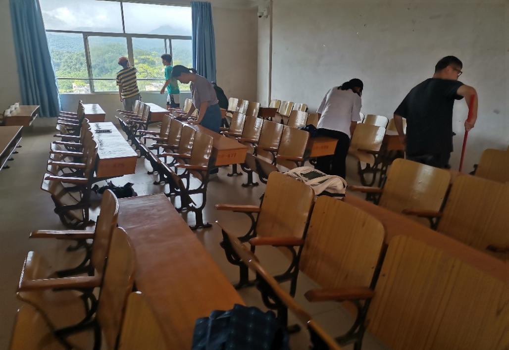 按照活动前期任务分配,由陈秋金同志带领清扫小分队前往任务区展开活动。同志们手拿垃圾袋,扫把等工具相互配合一丝不苟的清洁着教室。从讲台到墙角角落,我们以认真的态度完成任务,将平日上课的教室清理得干干净净。