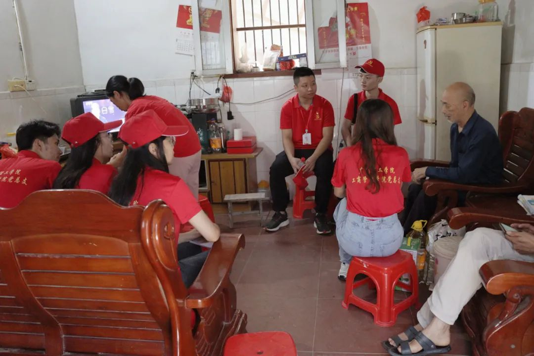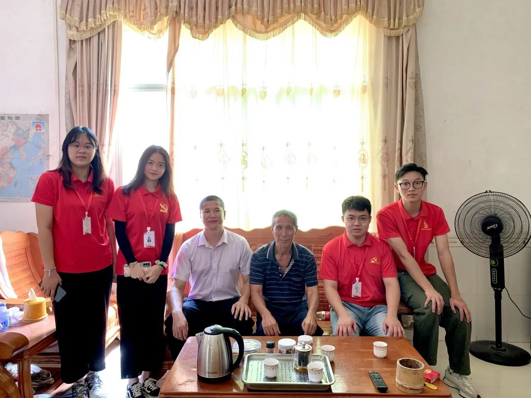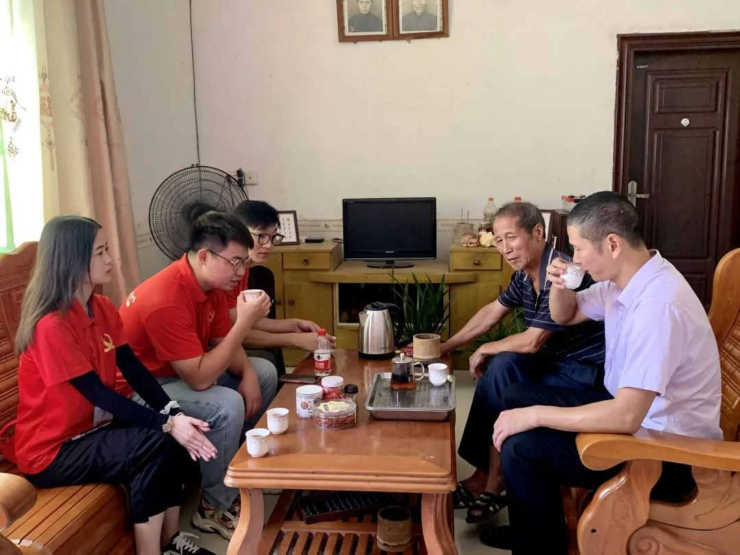 在村干部的陪同下,实践队员们依次探访慰问了老党员温爷爷、退任村干部刘先生,何女士、温女士、李爷爷,为他们送上我们精心准备的慰问品。