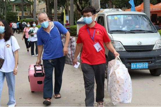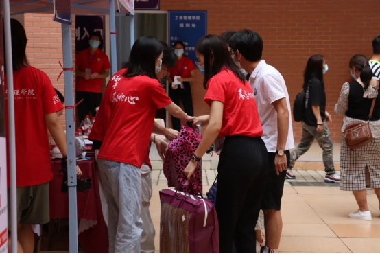 依婷:我们公告的志愿者十分负责任,耐心地指引我们去指定位置报道,给我们讲解报道流程。印象最深刻的是他们帮助我们拉运行李,很大程度上解决了我们大一新生行李多拿不动的问题,真的很感谢他们!