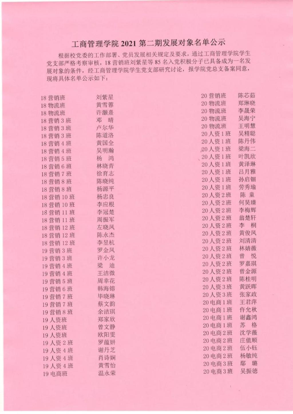 发展对象公示名单