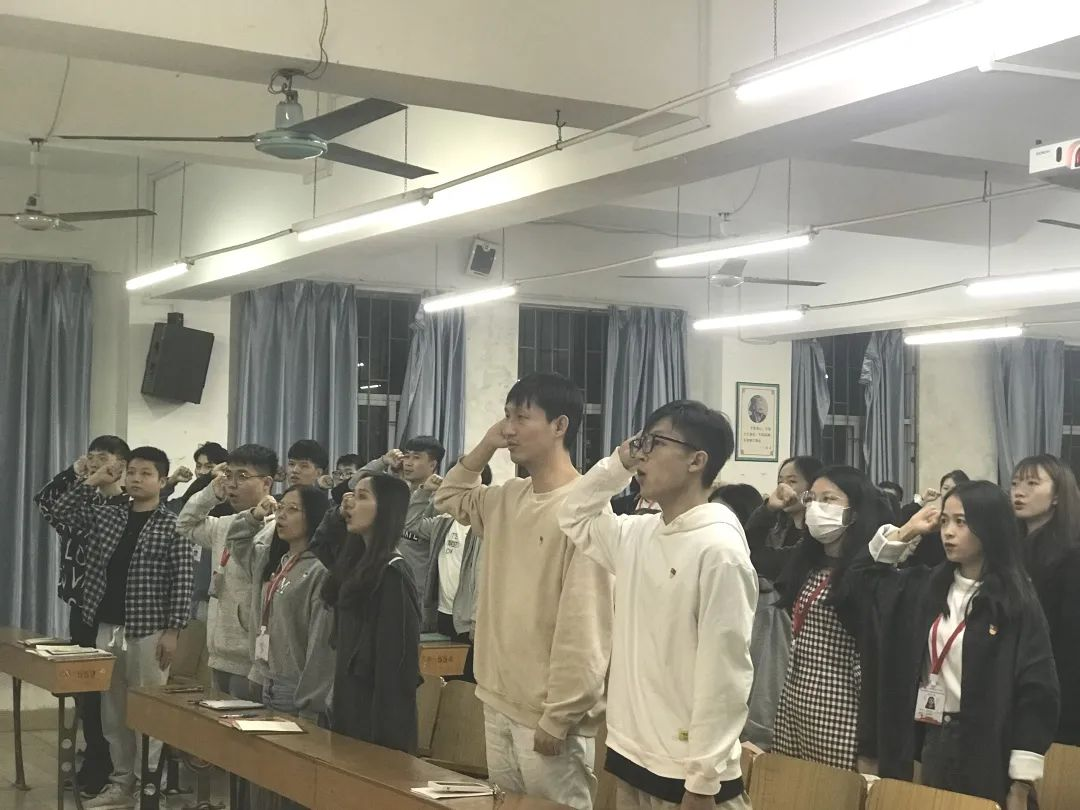刁凯聪同志带领全体成员起立再次重温入党誓词