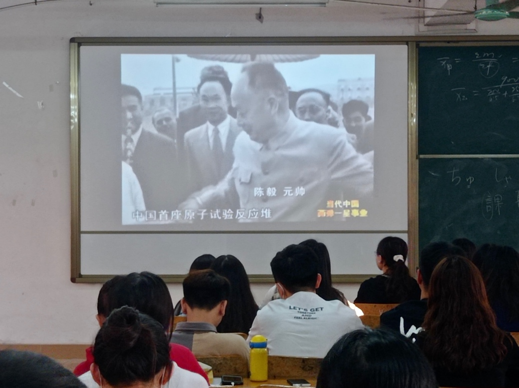 紧接着,钟敏华同志为给我们讲解了历史背景。上世纪50年代中期,诞生不久的新中国一穷二白、百废待兴,面对技术难题和国际封锁,在党中央的坚强领导下,我国广大科技工作者以惊人的毅力和勇气,取得了“两弹一星”事业的胜利。