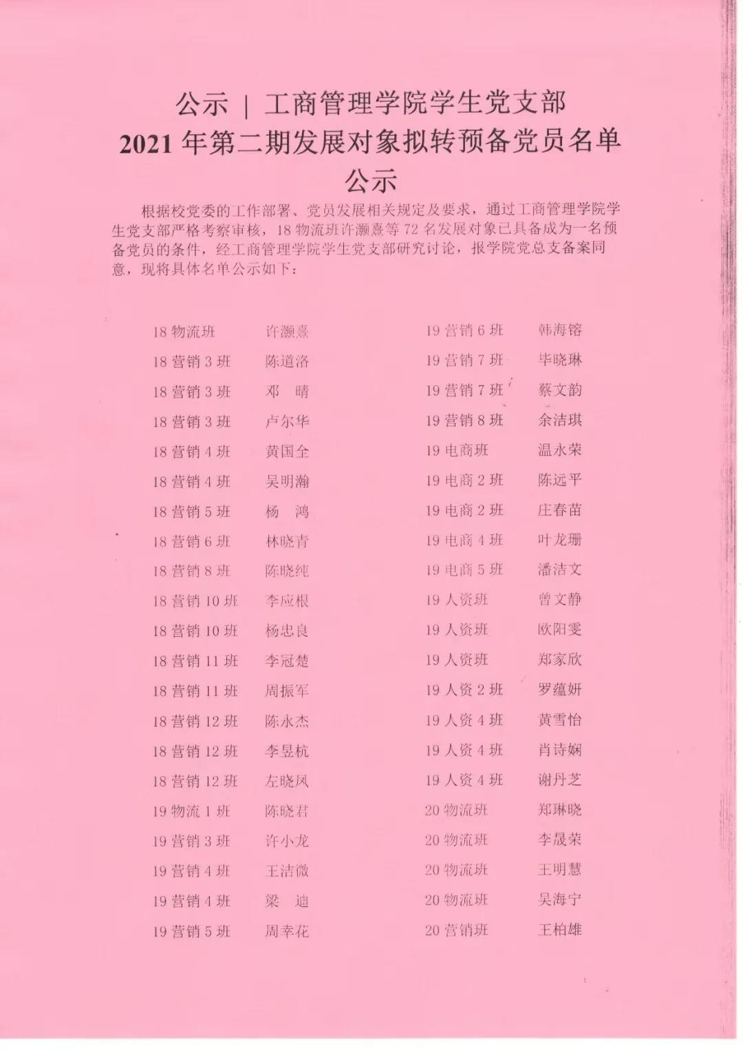 根据公司党委的工作部署、党员发展相关规定及要求,通过太阳成集团tyc151cc员工党支部严格考察审核,18物流班许灏熹等72名发展对象已具备成为一名预备党员的条件,经太阳成集团tyc151cc员工党支部研究讨论,报公司党总支备案同意,现将具体名单公示如下: