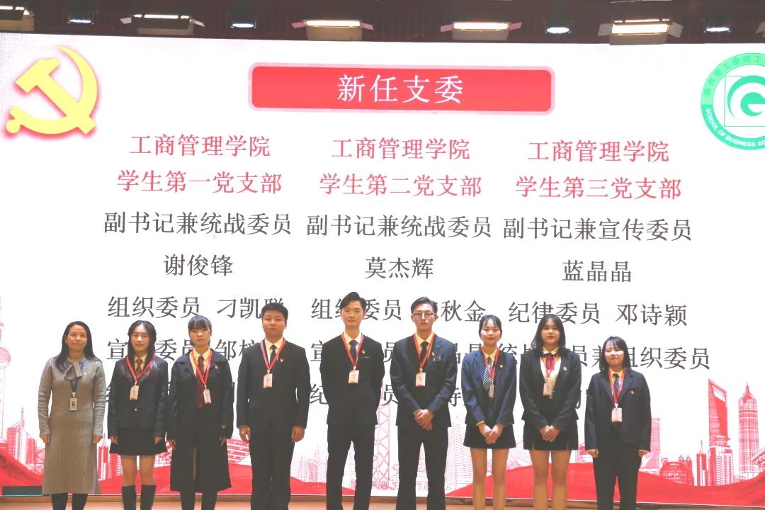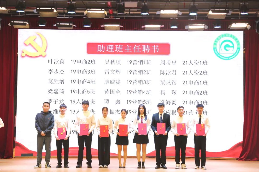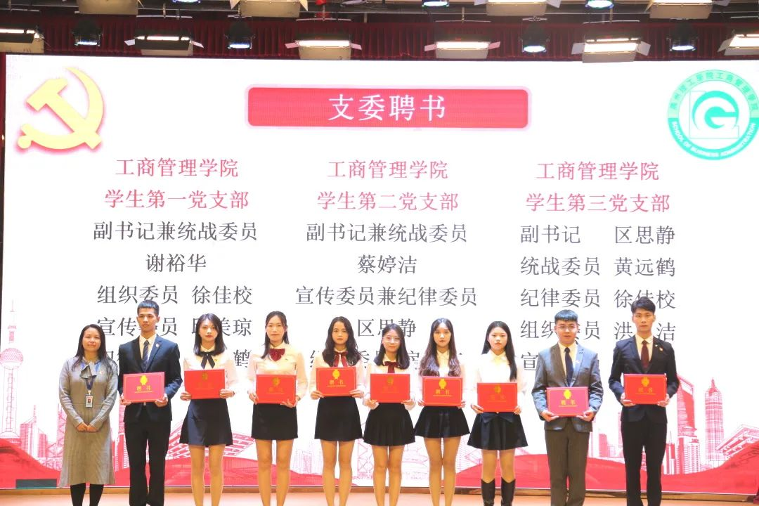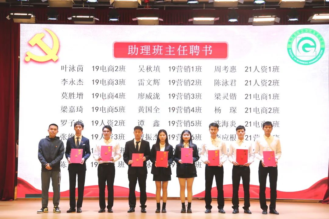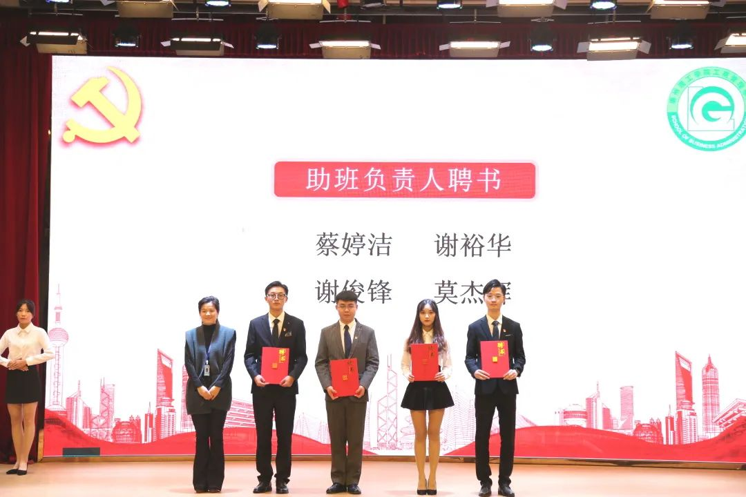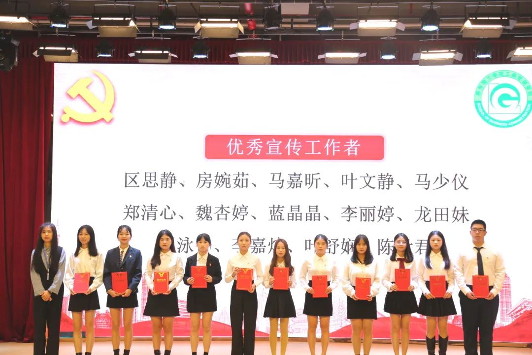 杨惠宣读2021年度新任支委名单并为他们颁发工作牌。刘威志老师宣读工作积极分子、优秀党务工作者、先进个人、优秀宣传工作者表彰名单。刘丹老师宣读2021年度工作助理班主任聘书及助班负责人聘书表彰名单。王宇瀚老师宣读2021年度支委聘书表彰名单。