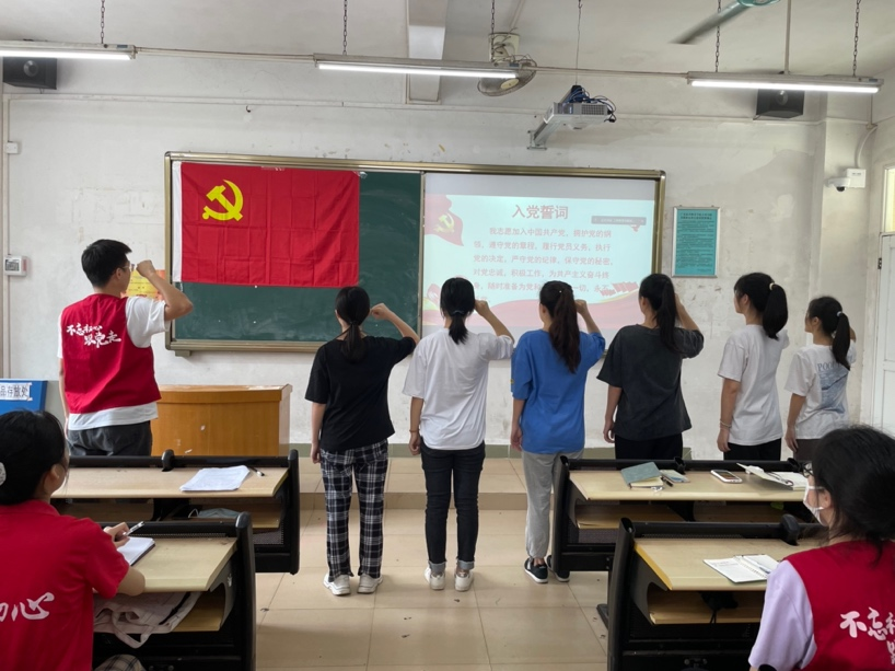 太阳成集团tyc151cc员工第三党支部会议宣誓现场(肖诗娴摄)