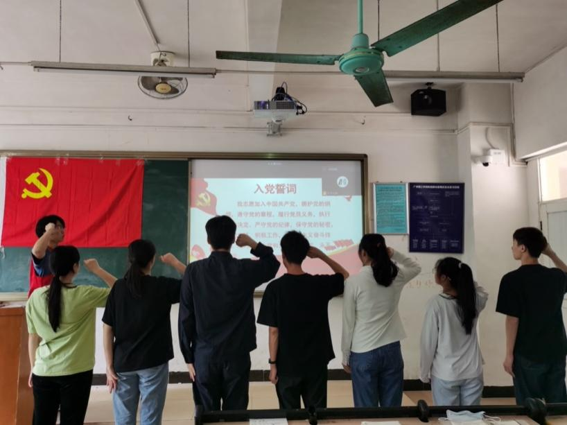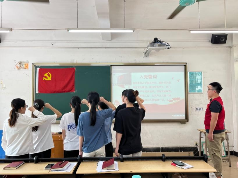 太阳成集团tyc151cc员工第四党支部会议宣誓现场(罗雅淇摄)