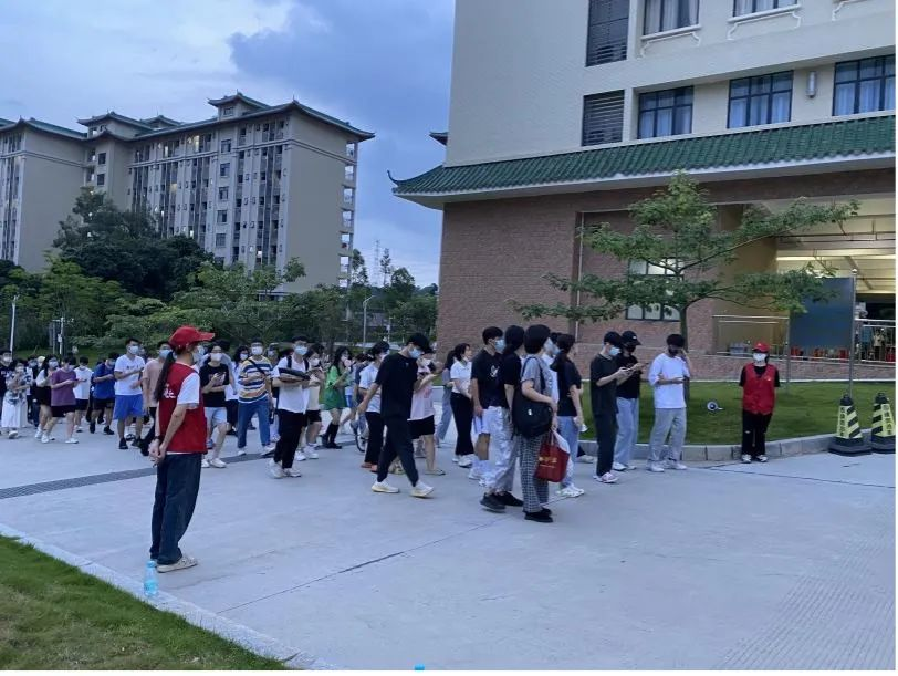 18:50分,8名入党积极分子于七栋咨询台集合完毕。梁俊龙同志对协助工作进行了详尽的分工布置和安全说明。他强调志愿者们在维持好现场秩序的同时,还要注意个人防护。紧接着,公司志愿者统一着装,前往核酸检测现场进行协助工作。