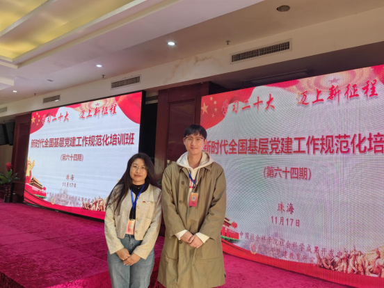 (刘威志 鄢璐)11月16日—19日,公司组织党务工作者孟芳、刘威志参加了中国社会科公告社会科学成果开发中心新时代党建教育研究院在珠海市举办的第64期《新时代全国基层党建工作规范化培训班》,此次培训是深入学习贯彻党的二十大精神,落实新时代党的建设总要求,有效提升党建工作规范化水平,全面提升党务工作质量。