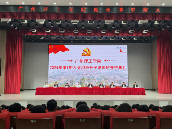 3月21日下午,广州理工公司党校2024年第1期入党积极分子培训班开班典礼分别于惠州校区大礼堂和白云校区1号报告厅同时举行。以切实加强入党积极分子对党的认识,端正其入党动机,坚定理想信念,把好党员发展的“质量关”。莅临本次开班典礼的嘉宾有公司党委书记黄圣诚,公司党委委员、副董事长肖海,主持人、副董事长张志红,各二级公司党总支书记以及各二级公告的入党积极分子参加了本次开班典礼。
