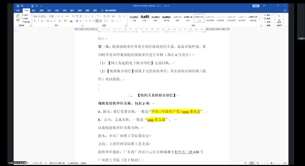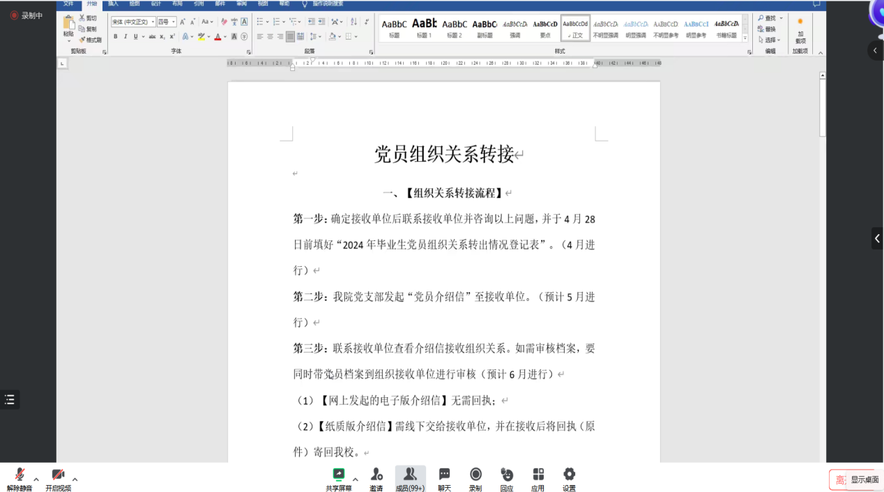 会上,刘威志老师首先向各位毕业生党员强调了组织关系转接的重要性。同时为保证每位毕业生党员的组织关系能够顺利转接,会议详细解读了组织关系转接的具体流程,同时介绍了毕业生党员组织关系转接工作的流程和注意事项,重点强调毕业生党员的档案归档和系统信息的核对问题,确保大家能够顺利转出。刘老师还提醒党员们认真完成党组织关系转接工作,遇到问题及时反馈、及时处理,以确保转接工作的准确性和高效性。