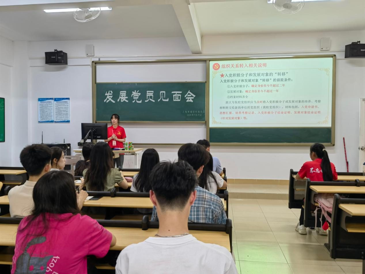 罗嘉艳,梁敏亭9月19日下午,公司党总支于7-501教室召开新生党员见面会。本次会议旨在增强新生党员的组织归属感,提高党员发展工作质量,提升党员党性修养。本次会议由丘娴同志主持。