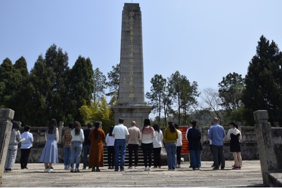 在三河坝战役纪念园,党员们怀着崇敬的心情,认真聆听讲解,重温1927年那场决定中国革命走向的关键战役。高耸的纪念碑前,大家整齐列队,鞠躬默哀,敬献鲜花,以表达对革命先烈的深切缅怀和崇高敬意。党总支书记杨惠动情地说:“先烈们用鲜血铸就的精神丰碑,永远激励我们为党育人、为国育才。我们要传承和弘扬革命先烈的光荣传统,不忘初心,牢记使命,为培养新时代优秀人才贡献自己的力量。”随后,党员们还参观了李光耀故居和花萼楼,感受客家文化的深厚底蕴,进一步增强了文化自信和民族自豪感。