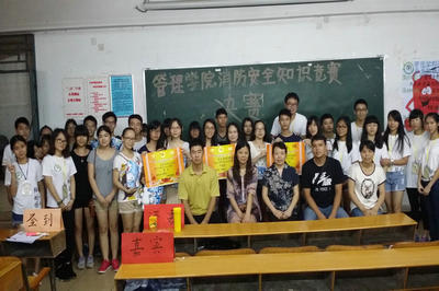 (通讯员:李丽华)6月15日晚,管理公告宿舍委员会在4栋教学楼举行了以“管理学子齐动员,共筑消防安全防火墙”为主题的消防安全知识竞赛。到场嘉宾有管理公司党总支书记杨晓文、办公室主任钟清恒,办公室老师崔运玲、黄浩、范晓果。