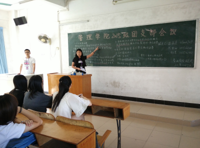 会议分两个流程进行,首先由团总支组织部大二干事吴奕芝向大家讲解关于新生团档及团费收取的步骤讲解以及一些相关注意事项,并指出一些常出现的错误。接着由团总支宣传部大二干事郑秋婉对墙报评比进行详细讲解并在现场为各班团干解决疑问。