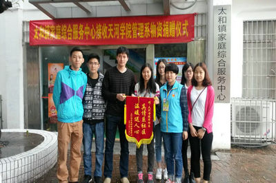 (通讯员 佘炜冰)11月6日,管理系在太和镇家庭综合服务中心举办了爱心捐赠活动。出席本次活动的嘉宾有系团总支书记钟劲老师和团总支员工会、《足迹》编辑委员会以及宿舍委员会的干部。