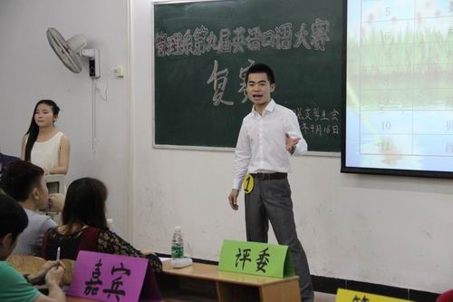 最后,我系2011级英语口语大赛冠军廖杰勇为本次比赛作出了精彩的点评。在点评中,他首先感谢了选手们的精彩表现,其次,对每位选手的发挥进行了综合的点评。激烈的比赛在掌声中圆满落幕。