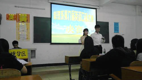 本系讯(通讯员:林睿)Where has our time gone?时间都去哪儿啦?4月24日22:00,我系第九届英语口语大赛决赛在经管楼510圆满结束!本次大赛为我系同学提供了一个展现自我英语才华的舞台,在这里他们可以翱翔于英语的海洋中。本次活动旨在提高我系老员工的英语口语水平、活跃校园英语文化生活、提高老员工的综合素质。这次竞赛选拔,为大家创造了良好的学习英语的平台,同学们英语口语表达与应用能力得以提高,激发了学习英语的积极性。