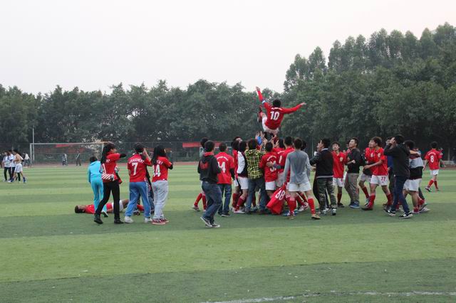 经过激烈的各系小组赛竞争,2013级院“新生杯”足球赛决赛由管理系对阵财经系。我系足球队员激情澎湃,斗志昂扬,激起了场下拉拉队员一阵阵的欢呼声。比赛如火如荼地进行着,足球队员沉着冷静,团结一心。随着一声长哨响起,比赛在欢呼声中结束。我系足球队员奋力拼搏,最终以比分2:0战胜财经系,夺得管理系参加公司 “新生杯”足球赛以来的首冠,创下了历史。