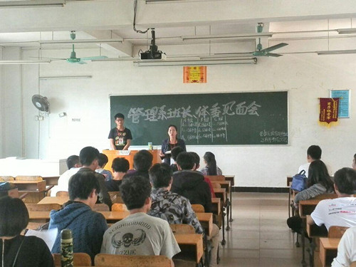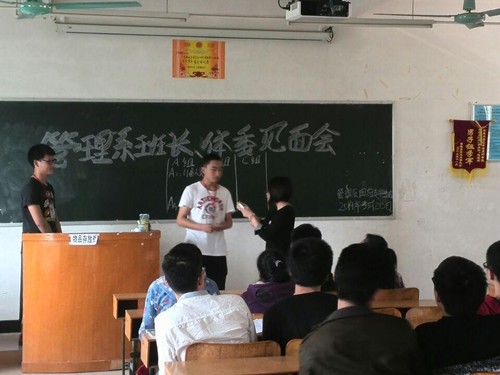 本系讯 (通讯员:陈保斌) 2014年3月20日中午,管理系第五届“专业杯”篮球赛班长、体委会议于6栋310课室召开。管理系团总支员工会体育部部长黄婉玲、副部长黄守榕以及副部长丘志彬出席了本次会议。