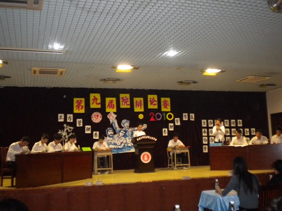 2010年4月25日下午4:30分,由公司团委主办,社团联合会和辩论协会承办的第九届辩论赛总决赛在六栋报告大厅隆重举行。