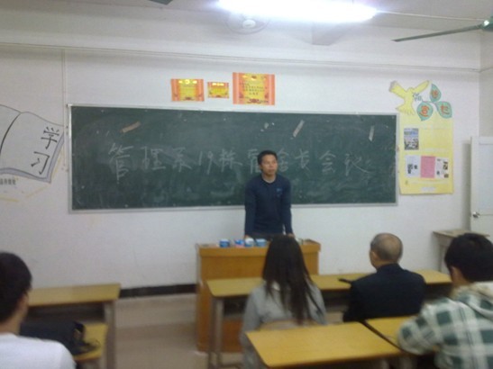 2010年10月31日晚上21点10分,管理系团总支员工会宿管部应管理系党总支书记刘元俊的要求,在6栋308召开了管理系19号楼宿舍长会议。此次会议有幸邀请到员工公寓中心主任彭文刚和管理系党总支书记刘元俊。而此会议是围绕上星期19号楼员工停电后乱丢垃圾的现象展开的。员工公寓中心彭文刚主任就19号楼连续发生几起停电丢垃圾的行为提出了严肃的批评。系党总支刘元俊书记对安全用电、不准乱丢垃圾、严禁男女互串宿舍、防盗、不准晚归、严禁熄灯后再上网 玩游戏等提出了具体的要求。参与本次会议的宿舍长都十分配合本次会议,表示在会议中学到了许多,相信会议结束后宿舍长会带领本宿舍的同学以正确的方式处理停电等问题。
