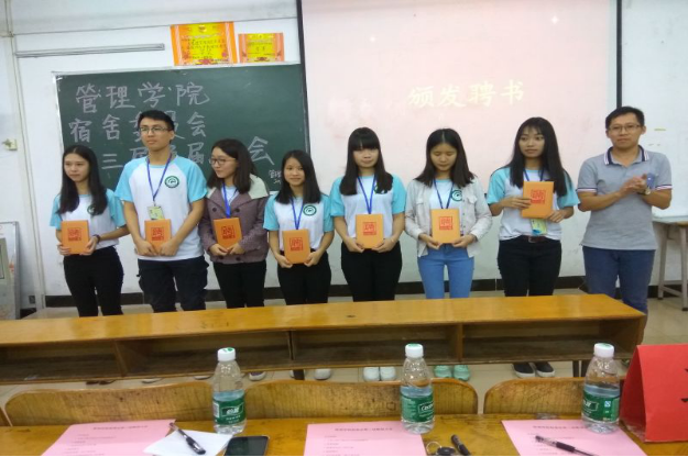 在全体人员观看了宿委会视频后,第三届宿委会会长黄晓辉从多个方面对上一届的宿委会进行工作汇报。紧接着,黄伟剑书记为第三届干部颁发聘书并宣读了新一届干部名单。新任会长王湛演发表了就职演说及工作展望,提出了其在接下来的工作计划,表示将不负大家的期望,带领新一届成员为管理公告宿舍委员会的工作尽自己的最大努力,让管理公告宿委会越办越好。
