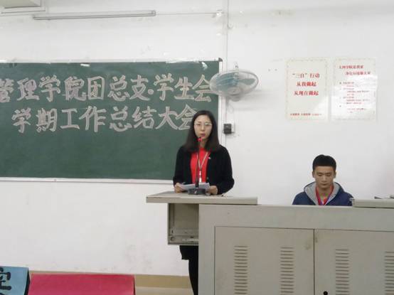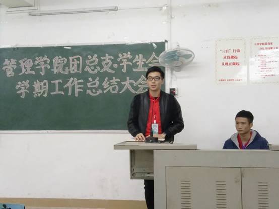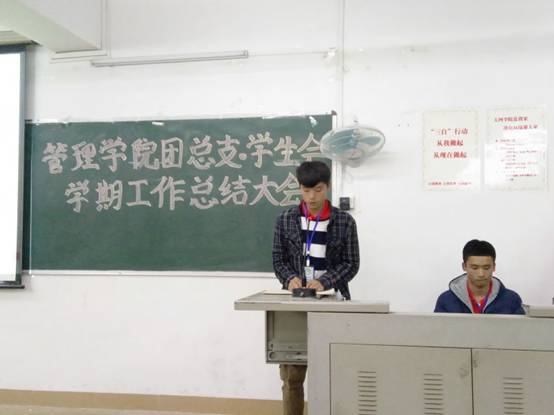 会议开始,全体成员起立奏唱共青团团歌。紧接着,共同观看本学期活动总结视频。然后,由公司体育部大一干事付宏经代表干事上台演讲,他从体育部出发,发表了自己进入员工会以来的感想,而后表明自己作为干事要不忘初心,牢记“工作快乐,快乐工作”这一宗旨。随后,由公司学习部副部长李沁瑜上台,她就本学期的工作做了两点总结:一是作为干部要对工作负责,明确自身定位;二是作为干事要注意自身工作态度和礼貌问题。接着,团总支副书记兼员工会主席孙李上台作学期总结,他简单回顾本学期的工作,然后指出组织部门间应注意沟通、能力、态度和责任的培养,干部和干事都应规范自身行为,增强语言表达能力,共同提高部门文化素质。最后,由黄伟剑书记作会议总结讲话,他肯定了全体成员的付出,也指出了我们的不足之处并希望我们有所改进。