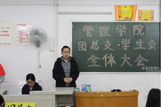 团总支书记黄伟剑上台作会议总结,他表达了对新学期工作的展望,并期望在新的学期员工会能够齐头并进、团结协作,改掉不足之处,更高效地完成好各项工作。