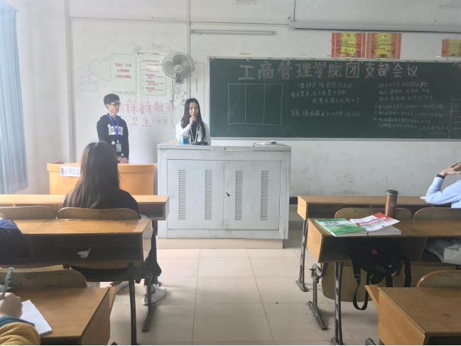 会议共有三项议程。首先,由公司团总支组织部大一干事陆振宇为17级各班团干讲解此次“雷锋月”墙报评比活动细则;接着,由团总支组织部副部长江丽颖上台说明有关团员转入转出及团员花名册的相关事宜;最后,由公司团总支副书记兼员工会主席方志涛作会议总结,他表明“雷锋月”墙报评比活动是公司传统,希望各班团干动员班上同学积极参与本次活动,学习雷锋精神。