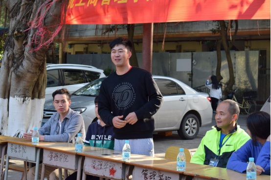 随着各专业代表队的球员代表在篮球场排列成队后,由团总支书记黄浩对本次篮球赛致开幕词。黄浩老师的精彩言辞中包含着对本次“专业杯”的期待与祝福,同时也表明了本次“专业杯”篮球赛的宗旨:友谊第一,比赛第二。
