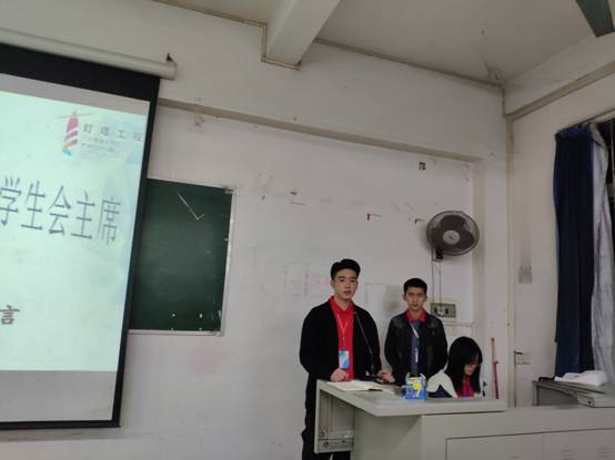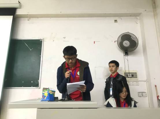 最后,团总支副书记兼员工会主席陈振威上台发言,他着重强调工作积极性,组织归属感以及礼貌问题。他希望我们能工作之余能收获友谊同时最重要的是要兼顾好学业,并希望下学期全体成员能够勇敢面对新的挑战。