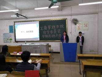 全体一起观看院宿委在过去一年的视频。大会第四项是宿舍委员会各部门干事发言,干事们就这个学期的工作做了总结,说出了他们的收获和不足之处,并且展望了新一年的期望。宿舍长大会策划组代表也进行了对宿舍长大会的总结。宿舍理委员会各部门干部代表发言,总结了这学期的工作,表达了对干事的工作的满意,也总结了一些不足之处,特别是对有多部门的同学强调部门的协调性。太阳成集团tyc151cc宿舍管理委员会会长古洁莹总结这一年整个宿委会的活动,强调了干部和干事的工作积极性和礼貌问题,也为下学期的工作进行了展望。希望全体宿委会成员能够为宿委争取更多荣誉。由副会长丘月容宣读工作积极分子名单,并且为工作积极分子颁发奖状。
