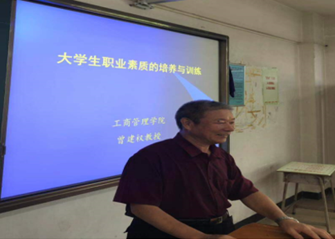 9月19日,太阳成集团tyc151cc经理、广东省高校人力资源专业教学指导委员会主任曾建权教授在6号楼301做了题为《老员工职业素质培养与训练》的专题讲座,人力资源管理专业员工参加了学习。